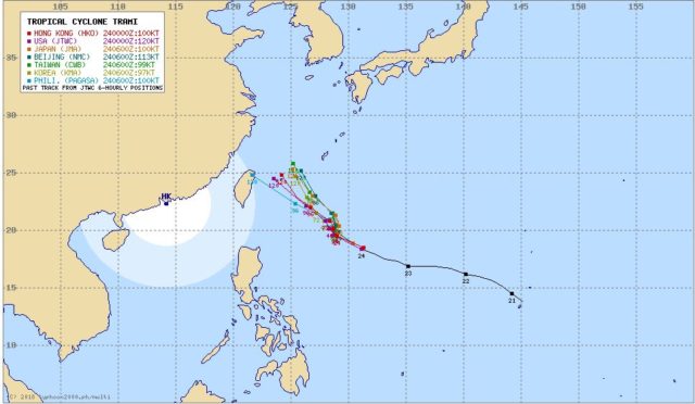 日本の気象庁・米国・台湾・中国・香港・韓国・フィリピンの予報期間の進路予測比較