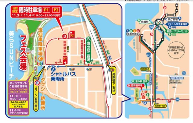11月3日・11月4日は豊見城市の【豊崎美らSUNビーチ】でモンゴル800主催の大規模な音楽フェスが開催されます。例年県内外から万単位の来場者があるこのイベント。車で来場する方も多く周辺地域は渋滞します。