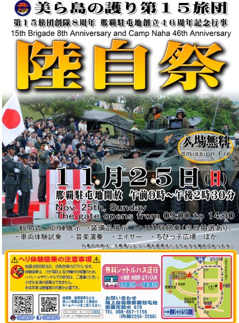 11月25日は那覇空港に隣接する陸上自衛隊那覇駐屯地で陸自祭が開催されます。