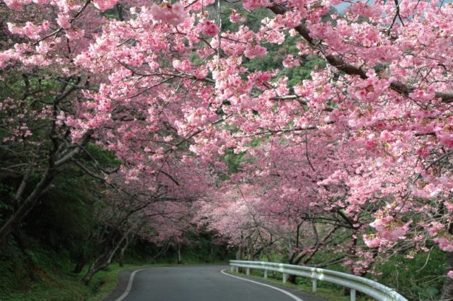 下旬には美ら海水族館近くの本部町や今帰仁城跡では桜が咲いています。