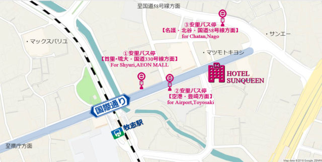ホテル⇒徒歩約2分⇒【安里バス停】