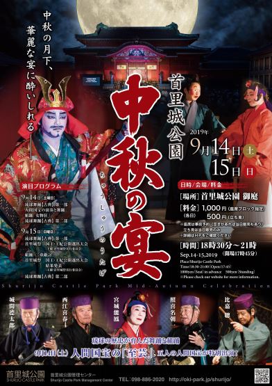 中秋の名月の下、首里城正殿前で毎年恒例の中秋の宴が今年も催されます。 9月14日・15日は夜間入場が可能です。毎年大変込み合います。 9月6日までに事務局へ事前にメールで申請すると、¥1000/1名の座席を確保できます。…