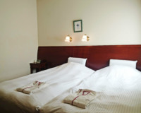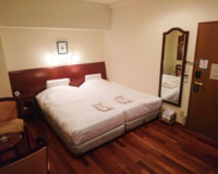 ツインルームは2基のベッドをくっつけた【ハリウッドベッド】にてご用意する事ができます。ベッドを壁側へ寄せている為添寝のお子様も安心してお休みになれます。