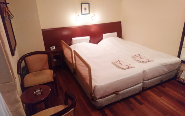ツインルームは2基のベッドをくっつけた【ハリウッドベッド】にてご用意する事ができます。ベッドを壁側へ寄せている為添寝のお子様も安心してお休みになれます。