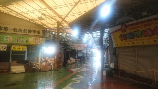 公設市場は終日閉鎖。周辺の店舗も閉店です。