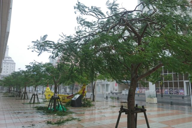 29日正午現在、那覇市内は猛烈な暴風雨です