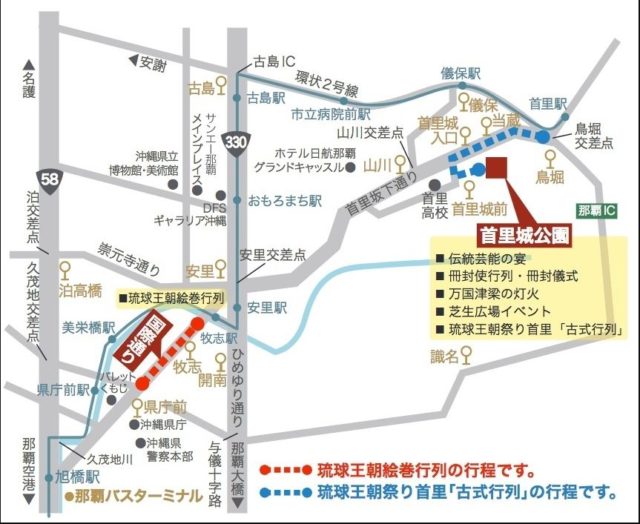11月3日は王朝時代の琉球国王の行幸を再現した「古式行列」の為、首里城周辺地域に交通規制が予定されています。この日レンタカーで首里城へ行くと交通規制と混雑の中満車マークばかりの駐車場めぐりをする可能性が高くなります。